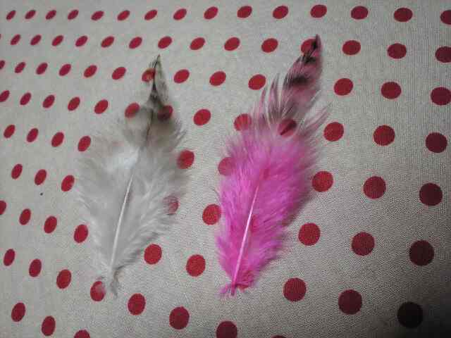 ま。コス用のピンクの羽根が見付からないので、染めてみた。