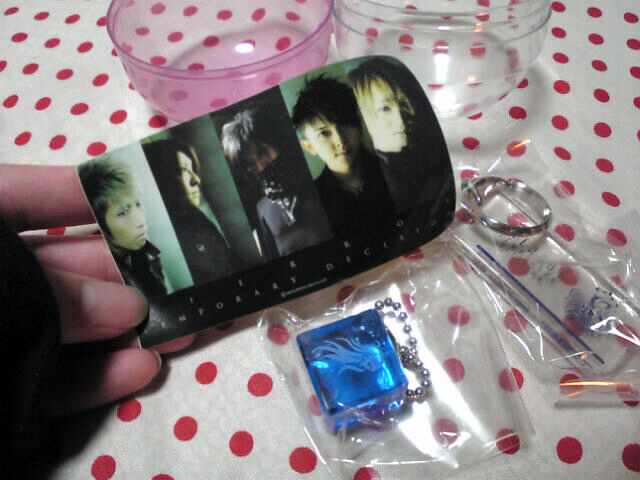 ステッカーとキーホルダー2個。